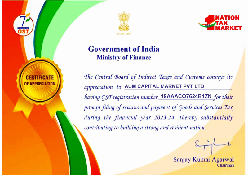 AUM Capital Market Pvt Ltd :SEBI Single Registration Number : INZ000185431 [ NSE : CM, FO, CD , BSE CM, FO , CD, MCX(COMMODITY), NSE & BSE COMMODITY, Registered Member Code: 12764 (NSE), 3180(BSE), 56505 (MCX). AMFI ARN No. : 64606 - AMFI Registered Mutual Fund Distributors, Depository Participant : NSDL : DP Id: IN304211, CDSL: SEBI Registration no. : IN-DP-CDSL-479-2008 DP Id: 12057800. Research Analyst SEBI Registration no.: INH300002423 CIN: U67120WB2005PTC103417